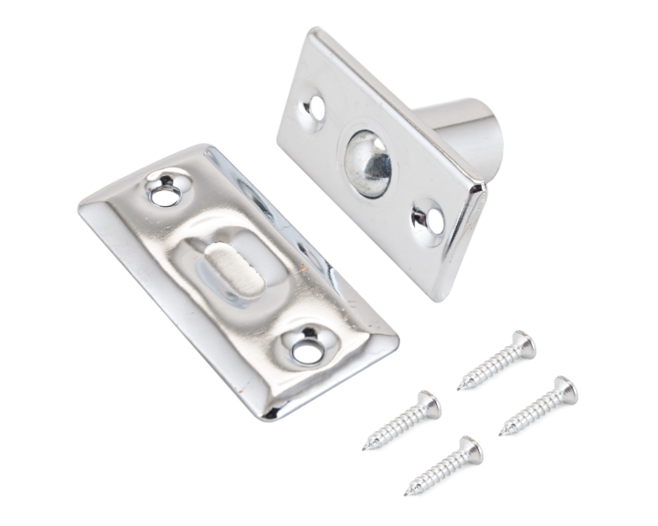 Фиксатор дверной с шариком. Предназначен для запирания межкомнатных дверей (алюминиевых, деревянных, из МДФ и ПВХ). Защелка не запирает, а защелкивает полотно, тем самым удерживая его в дверном проеме. Материал - ЦАМ, гальваническое покрытие. Габариты торцевой планки - 47х25 мм. В комплекте шурупы и ответная планка.