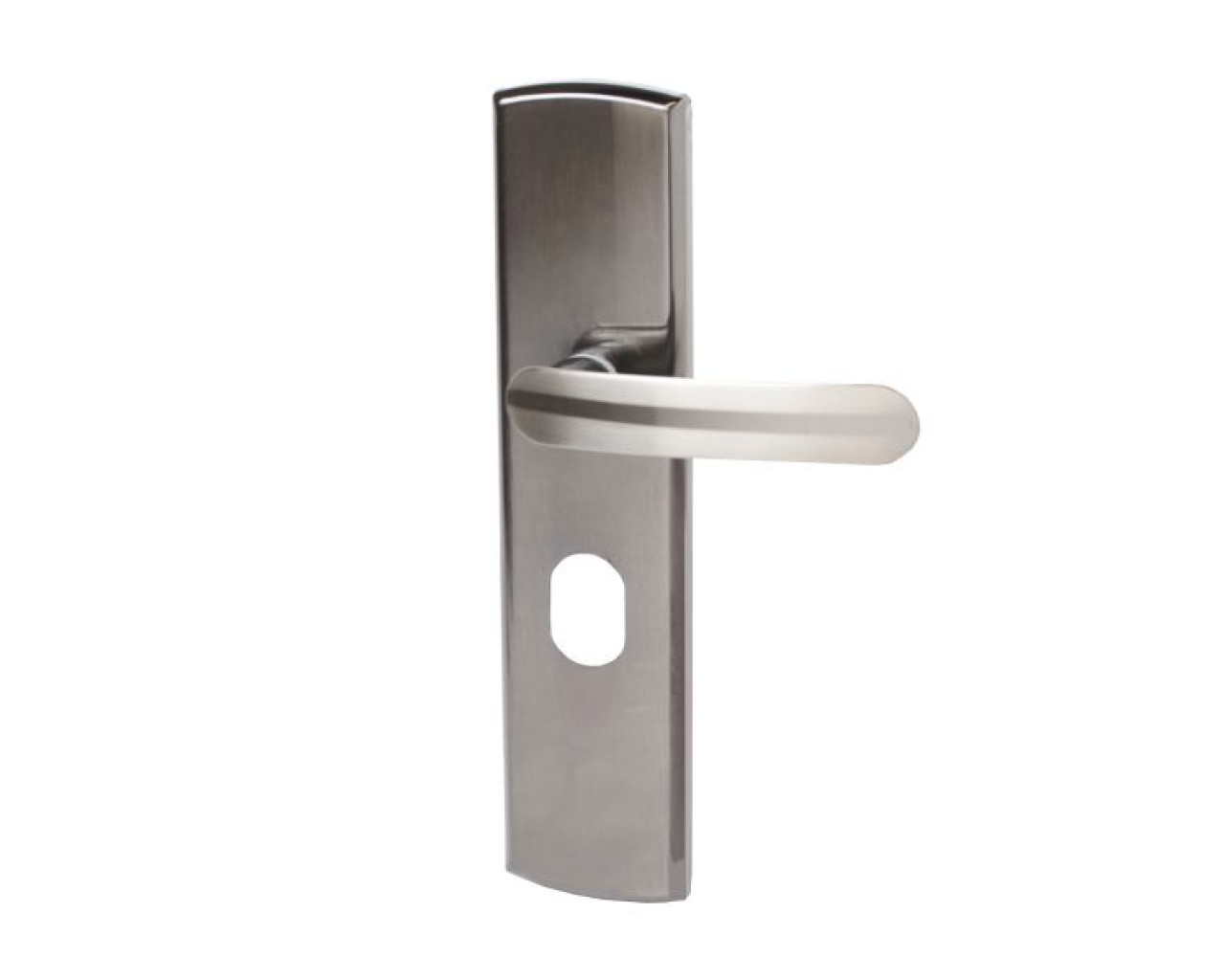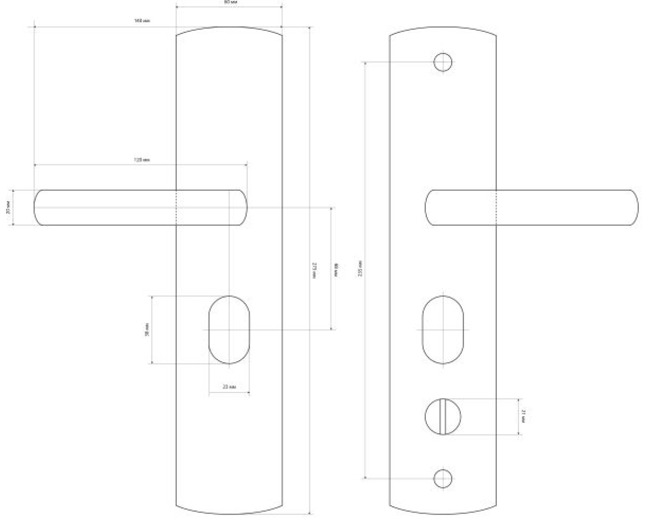 Ручка на планке под цилиндровый механизм. Предназначены для китайских металлических дверей, Подходят для замков не автоматического закрывания. Материал планки - сталь, толщиной 1мм, гальваническое покрытие. Межосевое расстояние - 68 мм, размеры планки - 60х275 мм, длина/высота ручки - 120/24 мм соответственно. Цвет ручек и планки - никель/хром. В комплект входят две ручки, винтовые стяжки, пластиковые прокладки и квадратный штырь (8х8 мм) 110 мм.