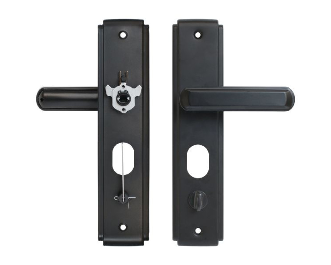 Ручки на планке под цилиндровый механизм. Предназначены для внутренних и наружных китайских металлических дверей, Материал ручки - сталь. Подходят для левых и правых замков автоматического и не автоматического закрывания. Межосевое расстояние - 68 мм, В комплект входят две ручки, винтовые стяжки, пластиковые прокладки и квадратный штырь (8х8 мм) 110 мм, комплекты стержней для автоматических и не автоматических замков. Ручка подходит как для левых, так и для правых дверей.