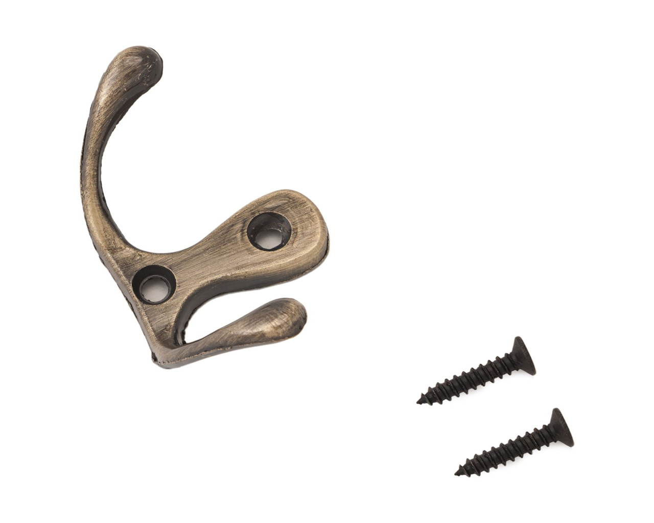Крючок-вешалка двухрожковый. Материал - алюминиевый сплав. Крепеж в комплекте.