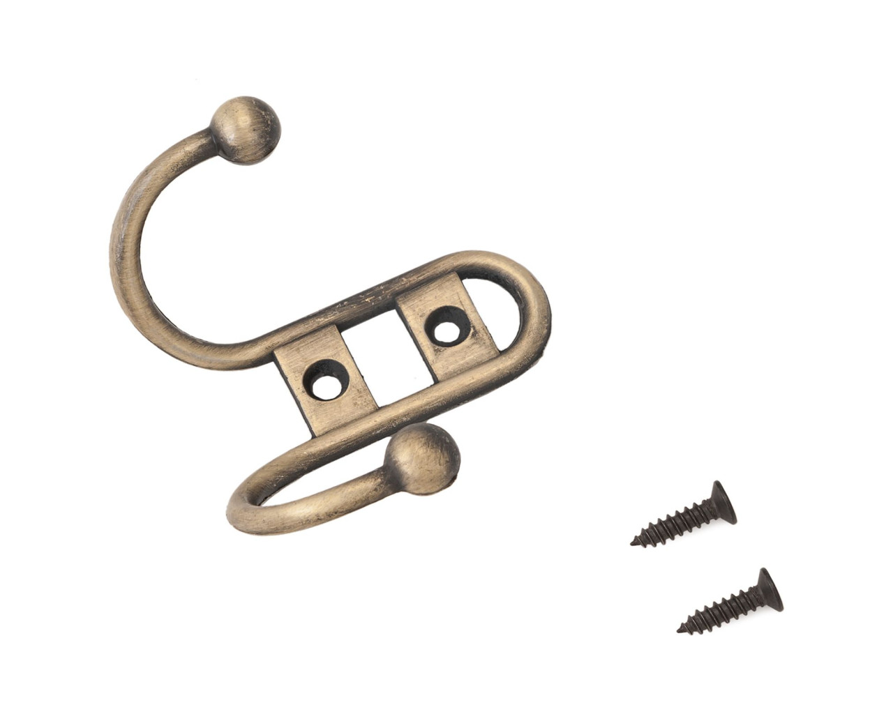 Крючок-вешалка двухрожковый. Материал - цинковый сплав. Крепеж в комплекте.