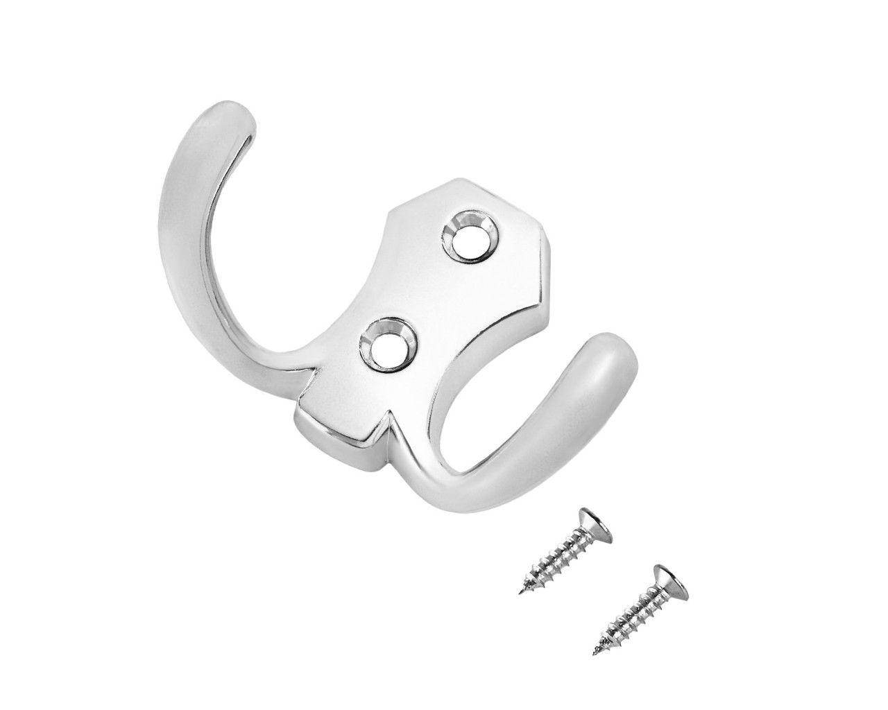Крючок-вешалка двухрожковый. Материал - алюминиевый сплав. Крепеж в комплекте.