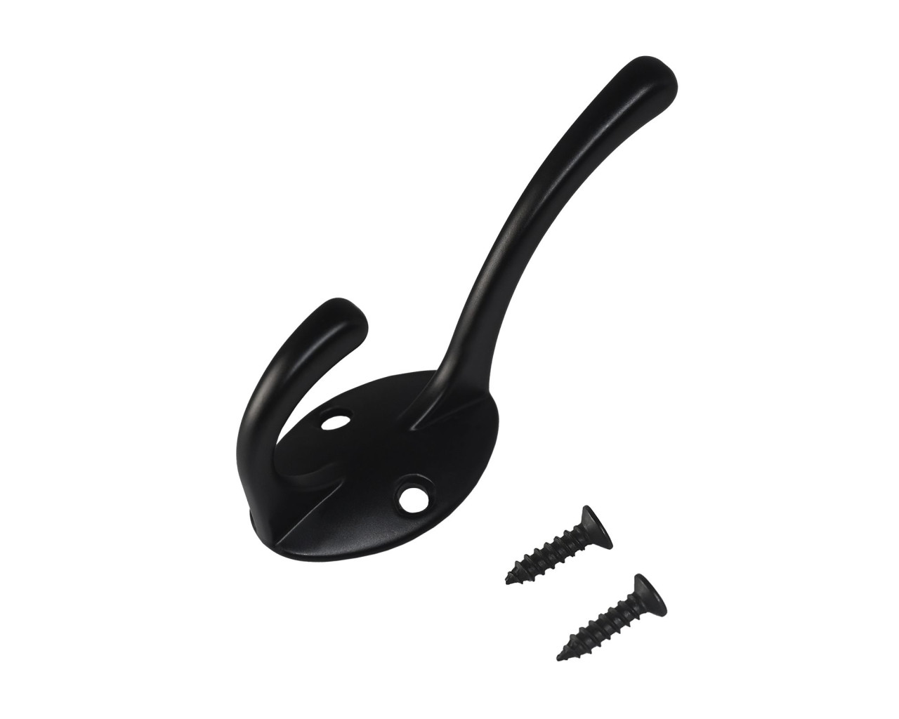 Крючок-вешалка двухрожковый. Материал - алюминиевый сплав. Крепеж в комплекте.