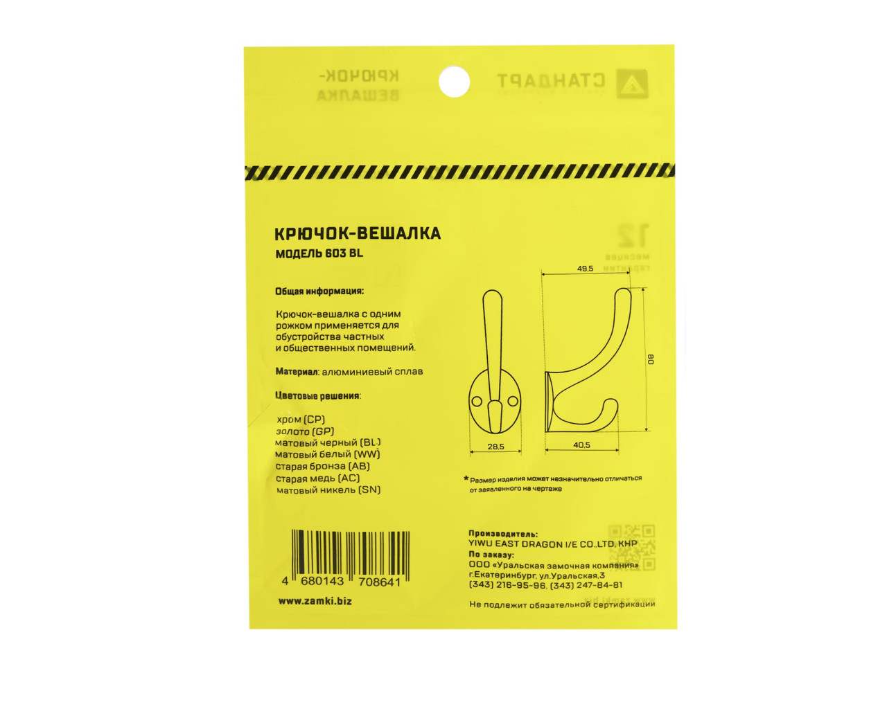 Крючок-вешалка двухрожковый. Материал - алюминиевый сплав. Крепеж в комплекте.