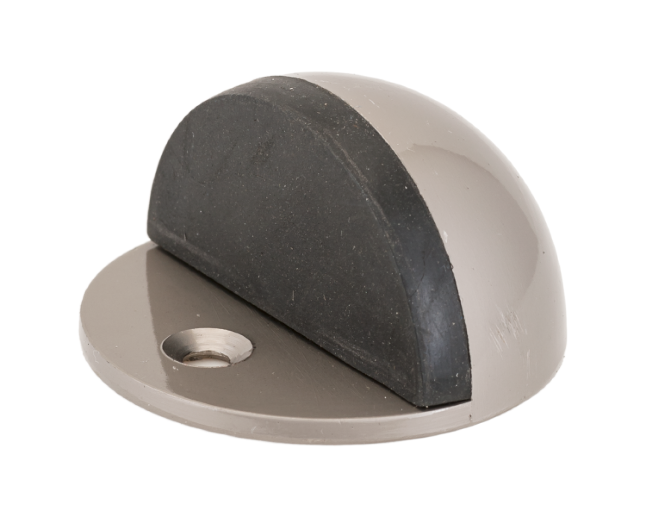 Ограничитель/упор дверной напольный. Материал - сплав ЦАМ, гальваническое покрытие, материал накладки - ПВХ. Имеет форму полусферы. Диаметр основания - 40мм. Крепеж в комплекте.