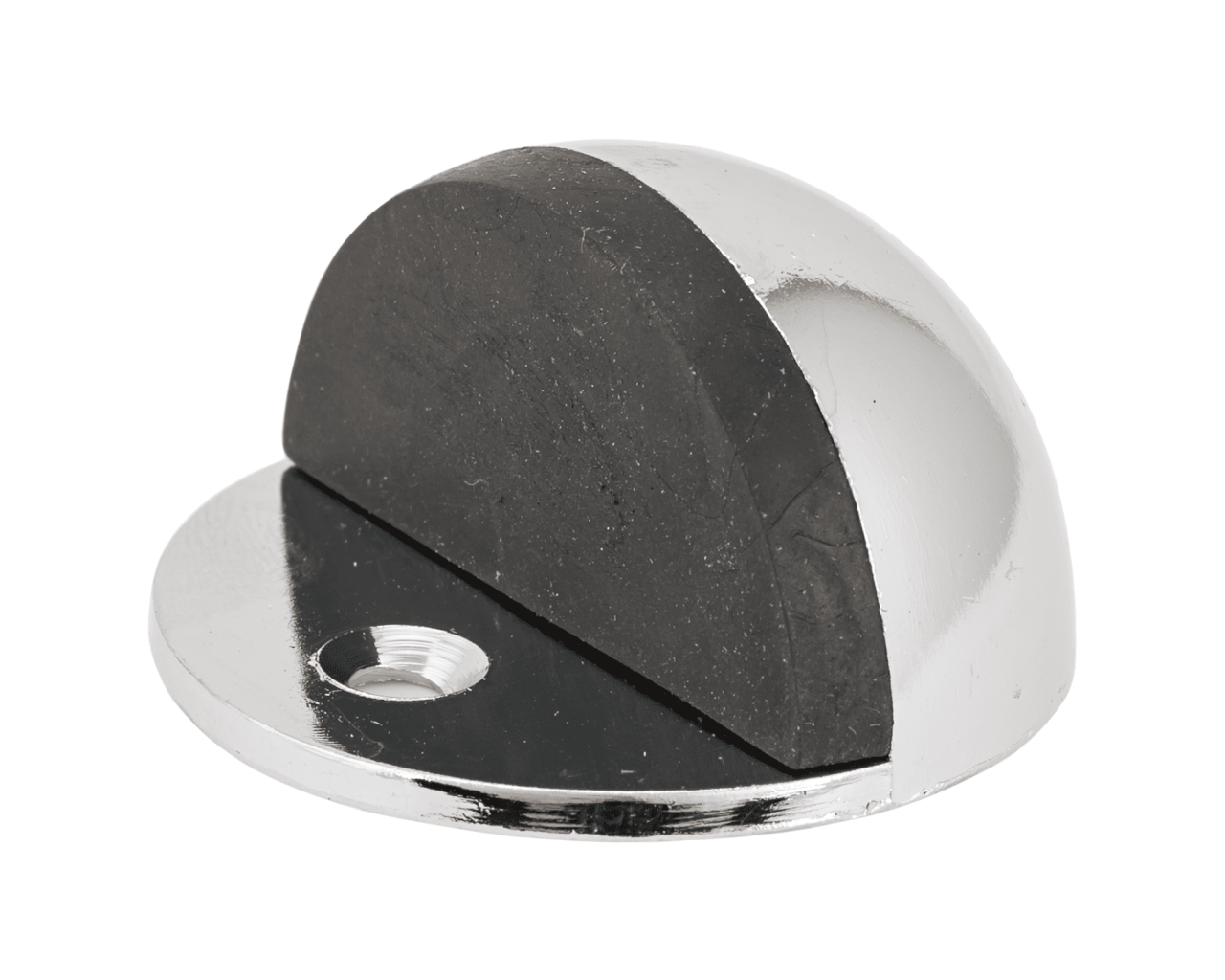 Ограничительупор дверной напольный Материал - сплав ЦАМ гальваническое покрытие материал накладки - ПВХ Имеет форму полусферы Диаметр основания - 40мм Крепеж в комплекте