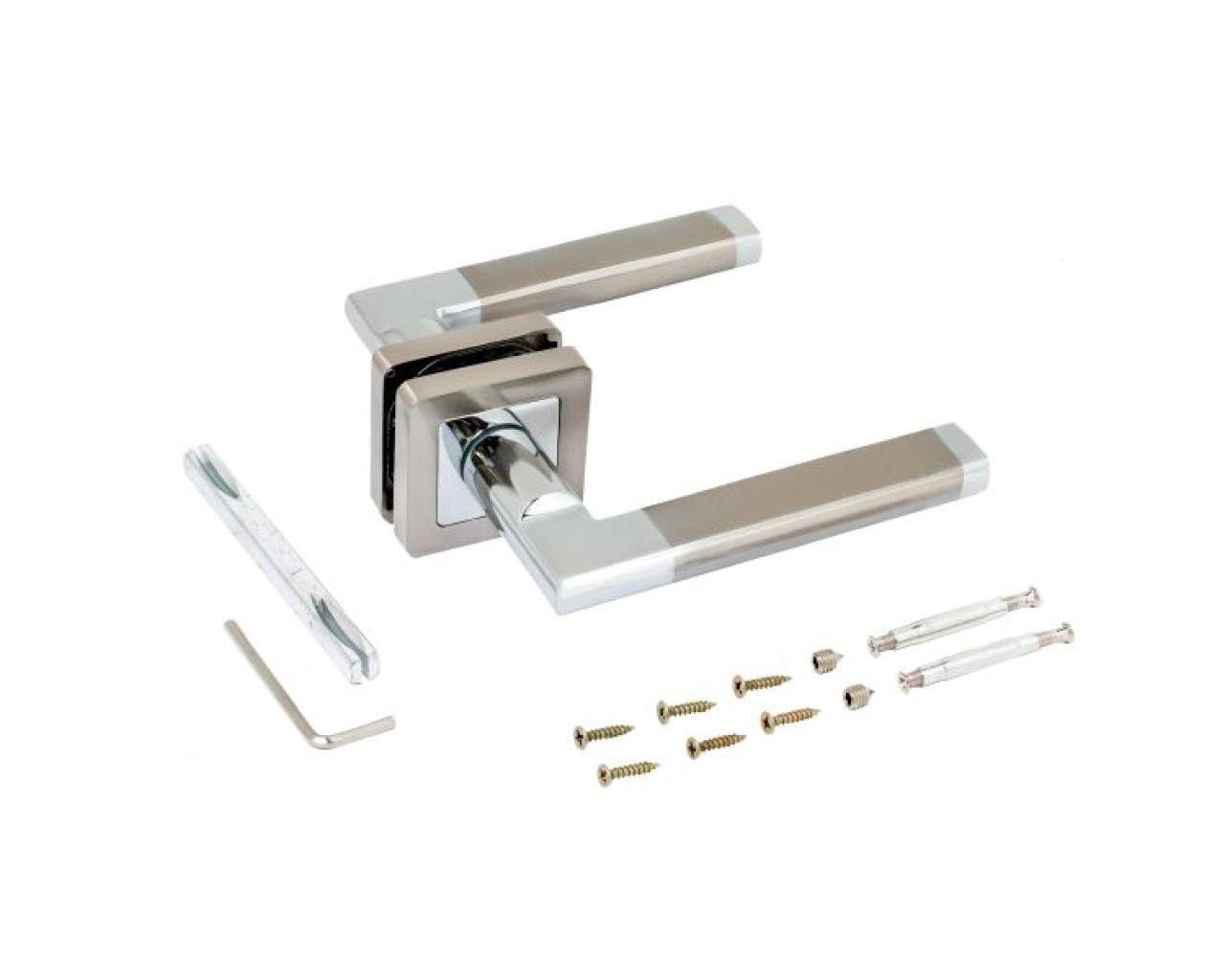 Ручка на квадратной накладке. Материал ручек — алюминиевый сплав, накладки — алюминиевый сплав. Многослойное гальваническое покрытие. Комплектуются винтовыми стяжками и шурупами. Длина разрезного квадрата - 105мм. Для дверей, толщиной 30-40 мм. Гарантийный срок эксплуатации — 3 года. Продукция с маркировкой В2В предназначена для продажи производителям межкомнатных дверей, строительным организациям и подрядчикам.