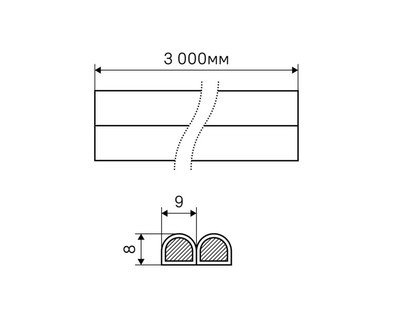 Стандарт Уплотнитель D9*8 пакет 6м (3+3) черный 4680143728472