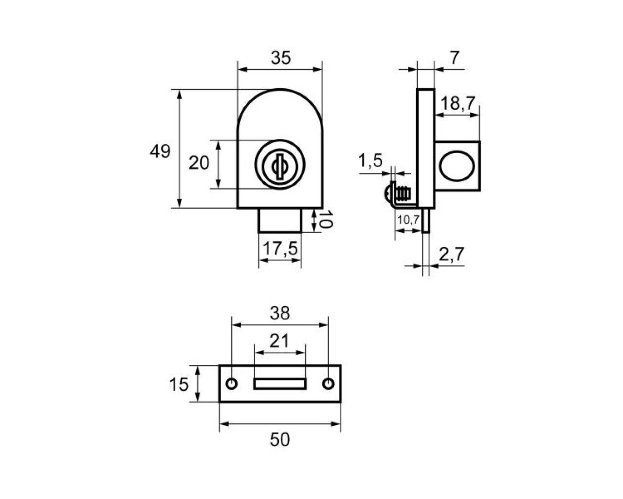 Замок предназначен для запирания стеклянных дверей витрин, шкафов. Данный замок предназначен для фиксации одной распашной стеклянной двери внутреннего расположения, максимальной толщиной не более 8 мм. Замок устанавливается без сверления стекла. Комплектация: