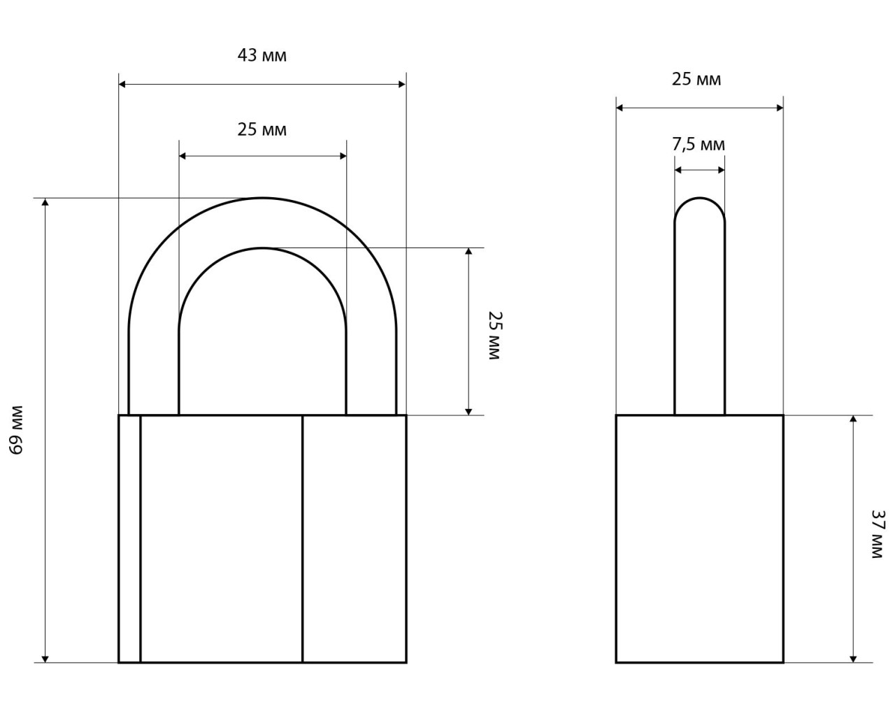 Замок навесной дисковый общего применения. Материал корпуса - алюминиевый сплав. Стальная дужка диаметром 7,5 мм; проем дужки - 25 мм по высоте и 25 мм по ширине. Габариты корпуса - 43х37 мм. Комплектуется 3 ключами.