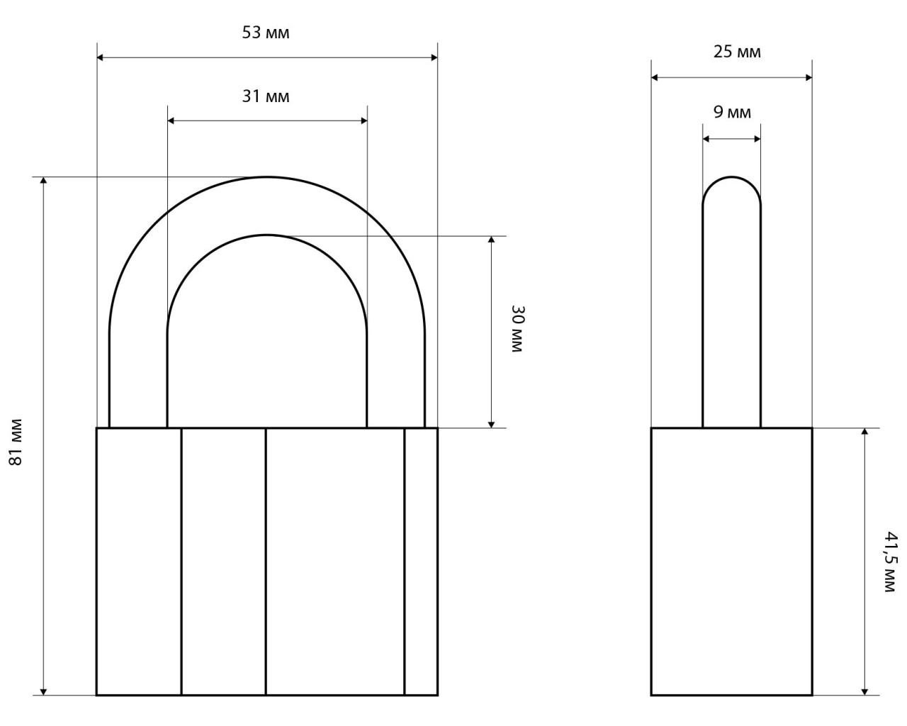 Замок навесной дисковый общего применения. Материал корпуса - алюминиевый сплав. Стальная дужка диаметром 9 мм; проем дужки - 31 мм по высоте и 30 мм по ширине. Габариты корпуса - 53х41,5 мм. Комплектуется 3 ключами.