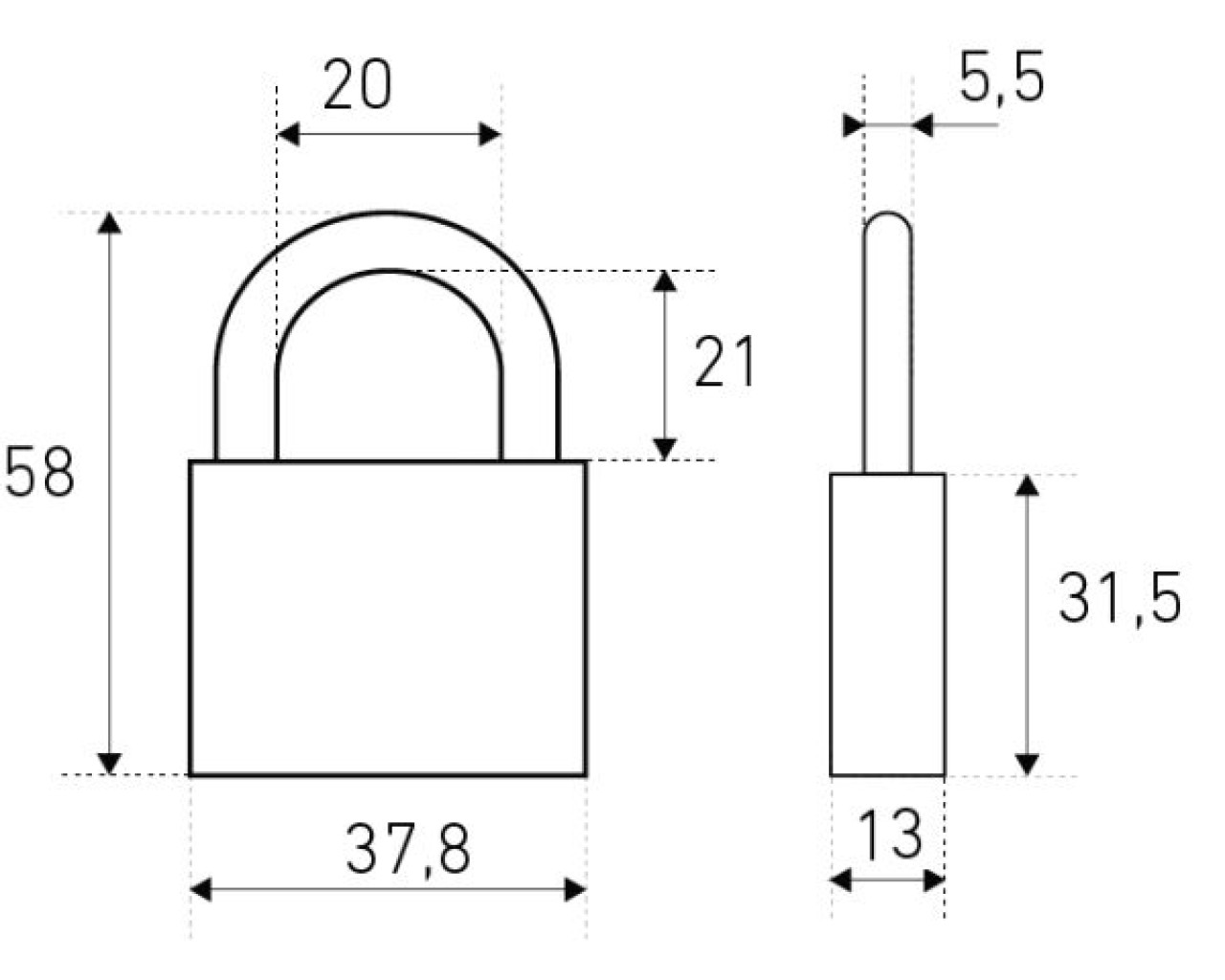 Замок навесной цилиндровый общего применения. Материал корпуса - чугун. Закаленная стальная дужка диаметром 5 мм; проем дужки - 21 мм по высоте и 21 мм по ширине. Габариты корпуса - 38х32 мм. Комплектуется 3 английскими ключами. Замок имеет функцию автоматического закрывания.