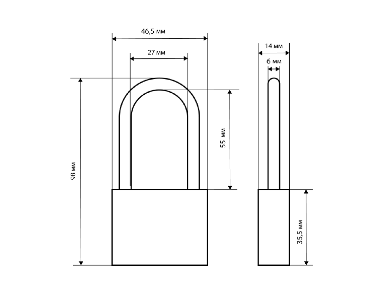 Замок навесной цилиндровый общего применения. Материал корпуса - чугун. Закаленная стальная дужка диаметром 6 мм; проем дужки - 55 мм по высоте и 27 мм по ширине. Габариты корпуса - 46,5х35,5 мм. Комплектуется 3 английскими ключами. Замок имеет функцию автоматического закрывания.