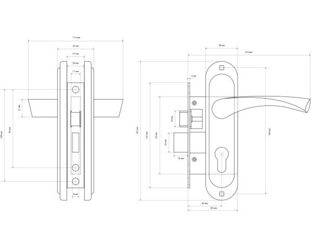 Замок врезной с ручками. Предназначен для установки в деревянные двери толщиной до 40мм, правого и левого открывания. Дверь может быть закрыта на защелку и открыта с помощью фалевой ручки при открытом засове замка. Прямоугольный ригель, вылет 16мм. Универсальная защелка. Стальной корпус, покрытие эмаль. Межосевое расстояние 50мм. Удаление ключевого отверстия 40мм. Гальваническое покрытие ручек, материал алюминий. Механизм секрета с уменьшеной высотой профиля, длина ц/м 68 мм, ключ-вертушка, 5 ключей.