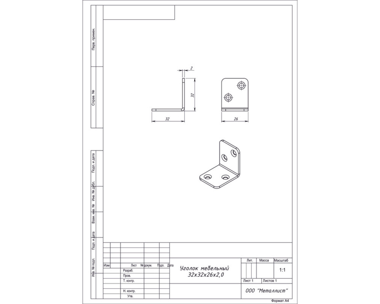 Уголок 32*32*26*2,0 цинк 14620004501988