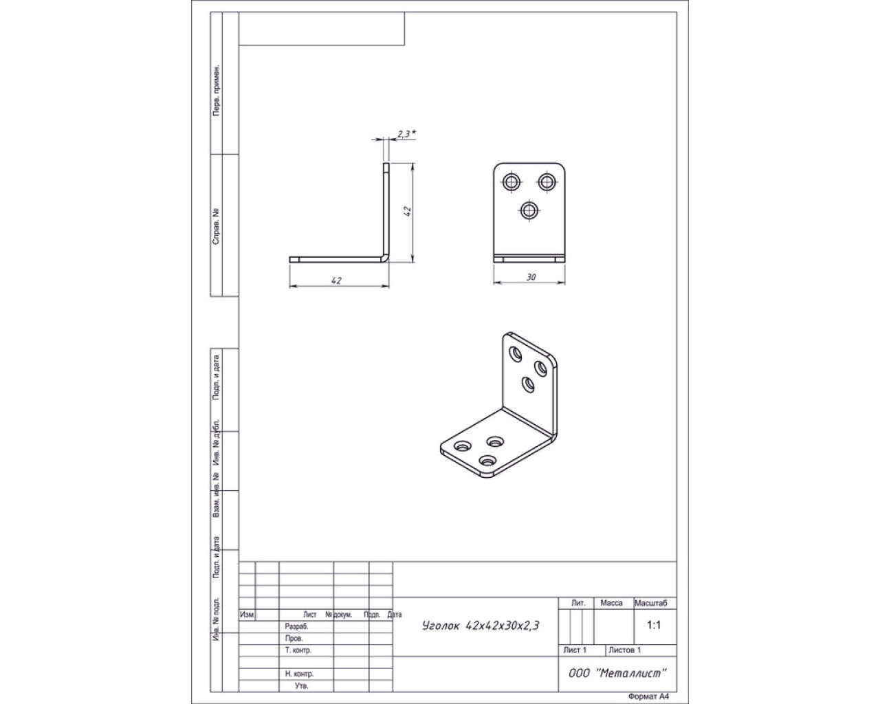 Уголок 42*42*30*2,3 цинк 14620004502008