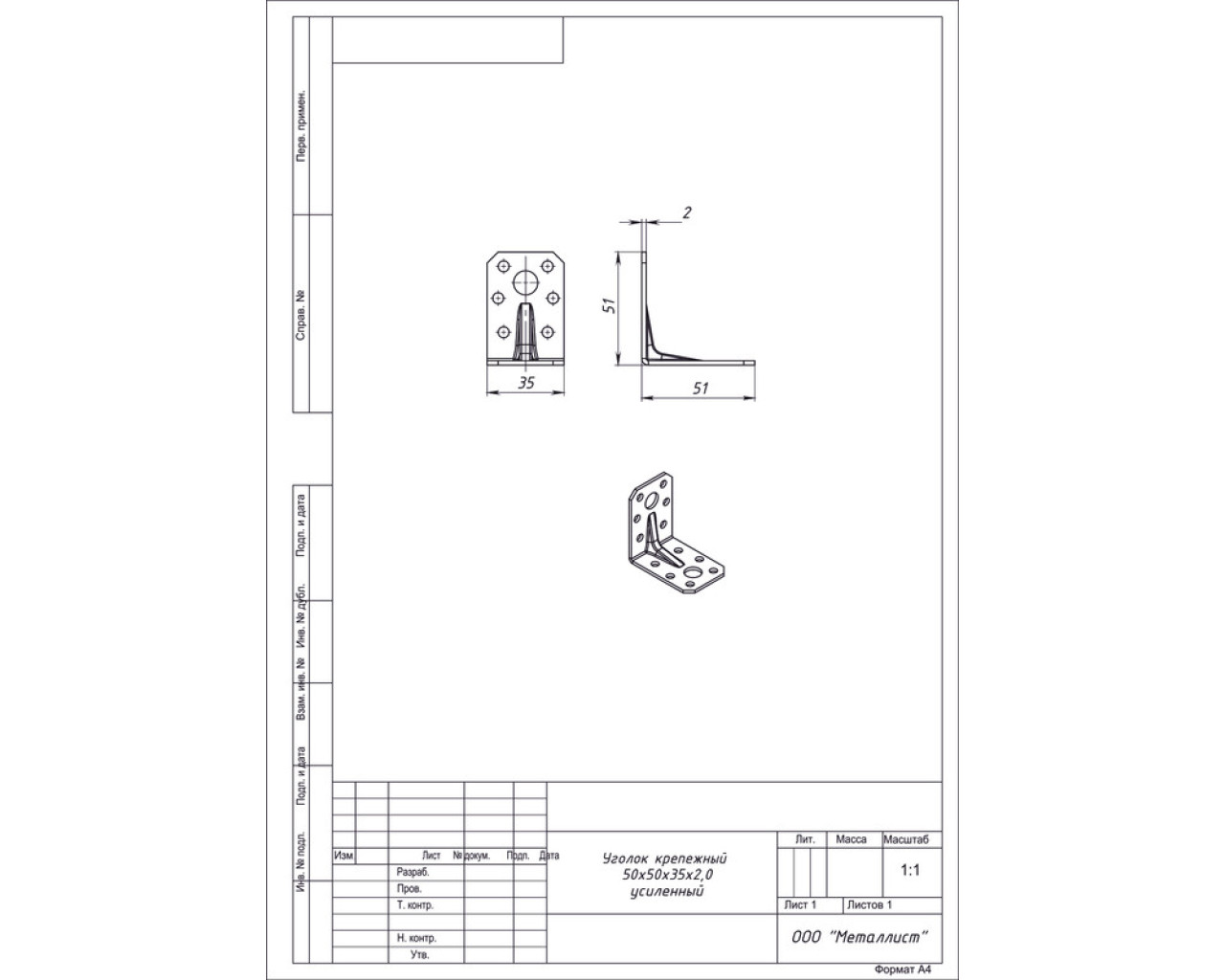 Уголок крепеж 50*50*35*2,0 усил ГОЦ 14680039973471