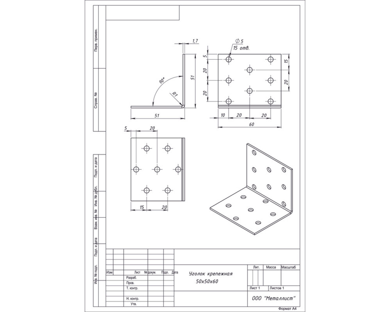 Уголок крепеж 50*50*60*2,0 ГОЦ (50) 14660214391245