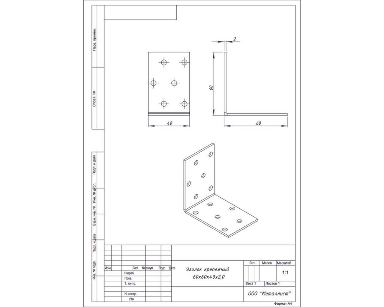 Уголок крепеж 60*60*40*2,0 ГОЦ (50) 14660214390248