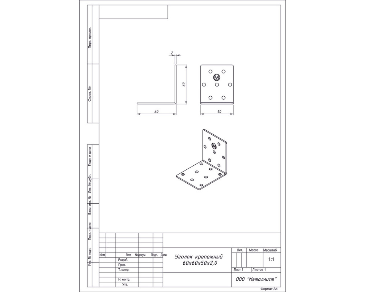 Уголок крепеж 60*60*50*2,0 ГОЦ (50) 14680039979848