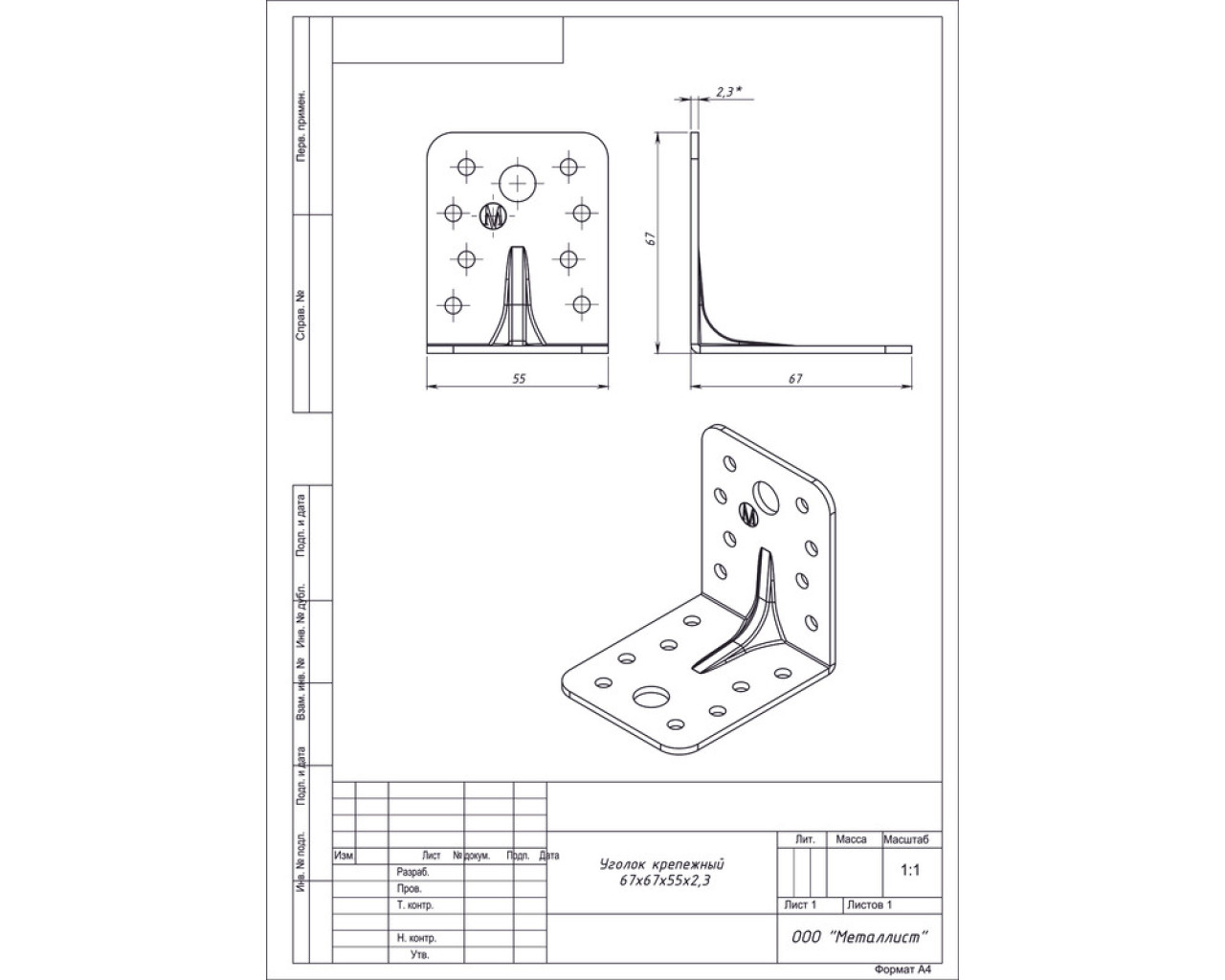 Уголок крепеж 67*67*55*2,3 усил цинк (40) 14620004503898