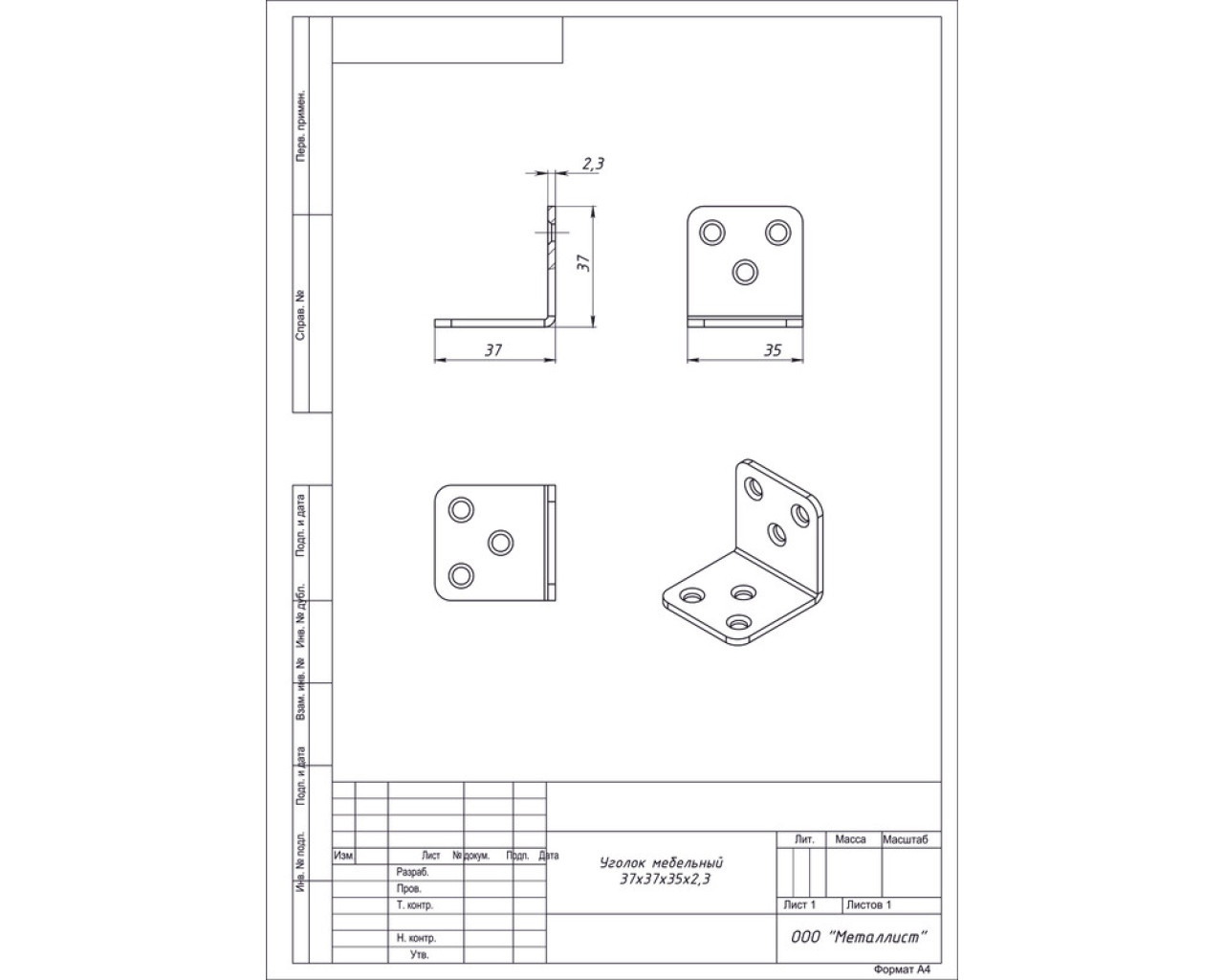 Уголок мебельный 37*37*35*2,3 цинк 14620004508482