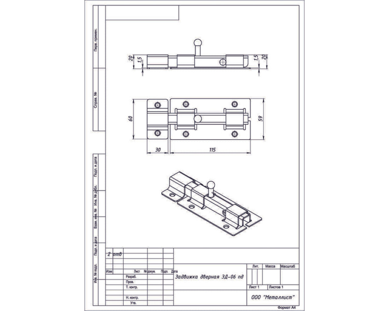 Задвижка двер ЗД-06 ПД полимер цинк 14620004509731