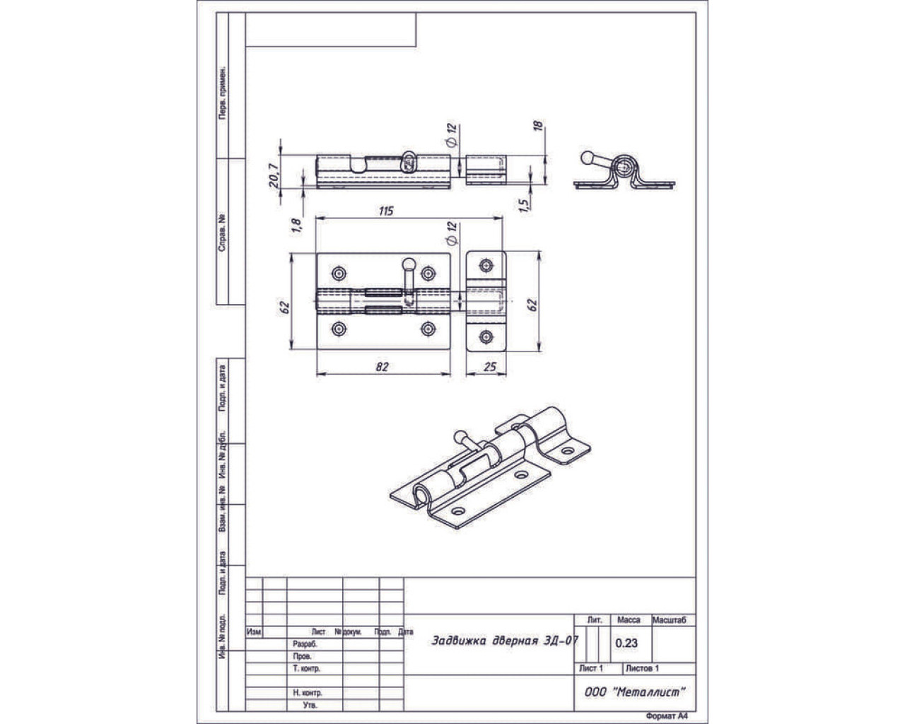 Задвижка двер ЗД-07 полимер бронза 14620004508215