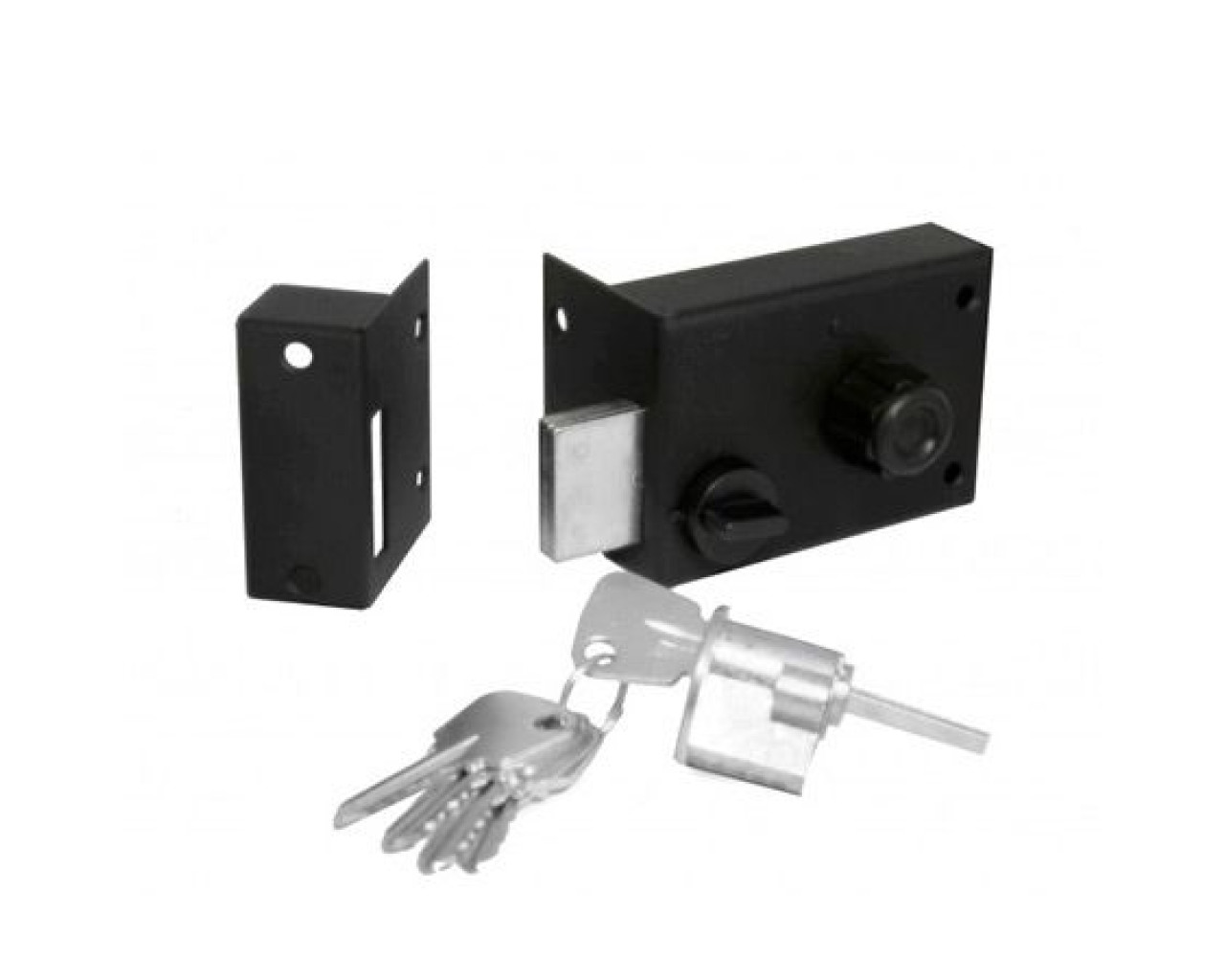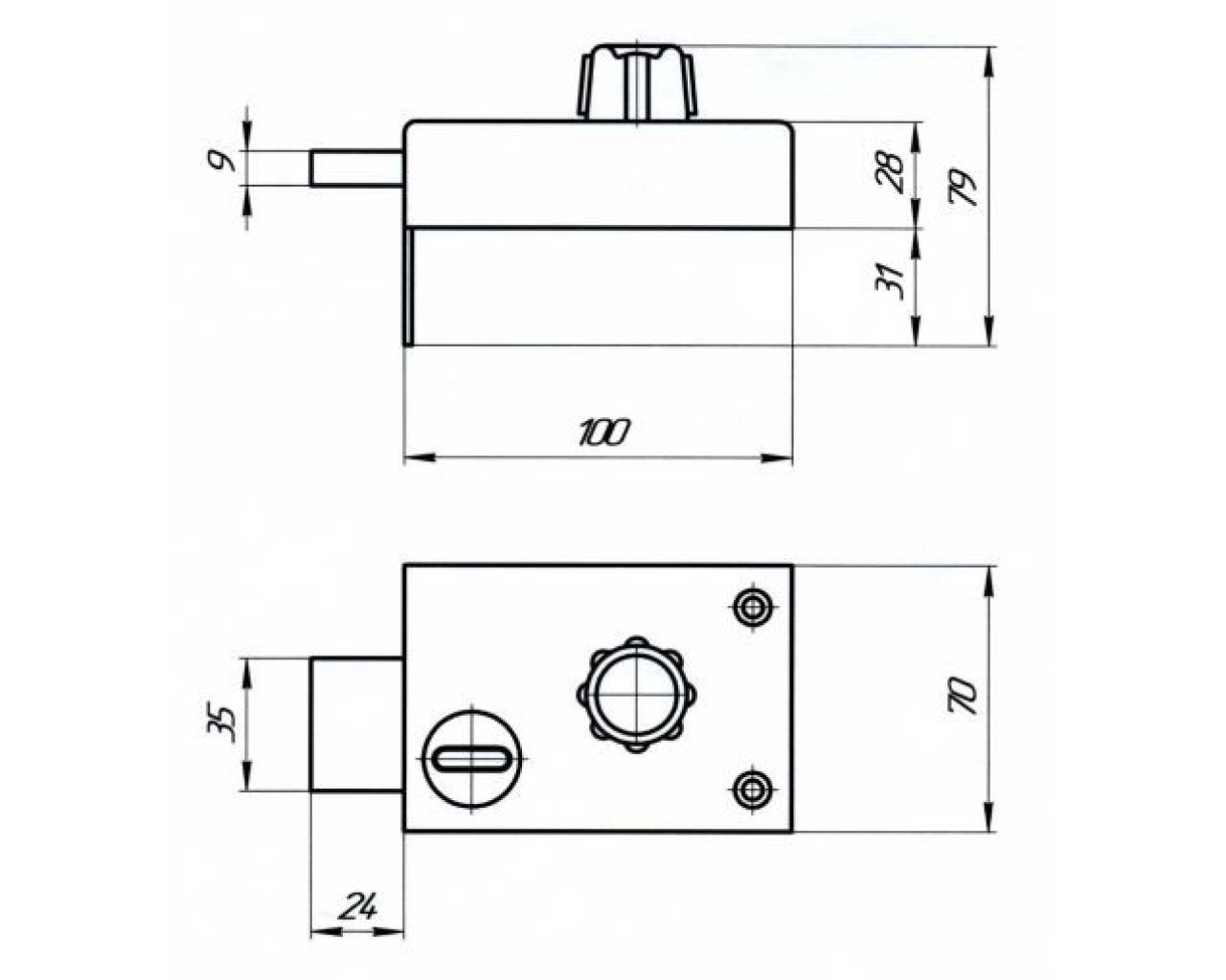 Замок накладной цилиндровый с вертушкой и фиксатором. Предназначен для установки на деревянные двери. Засов прямоугольного сечения 9х35 мм, с максимальным вылетом 24 мм. Удаление ключевого отверстия - 58 мм. Комплектация - 5 ключей, запорная коробка, накладка.