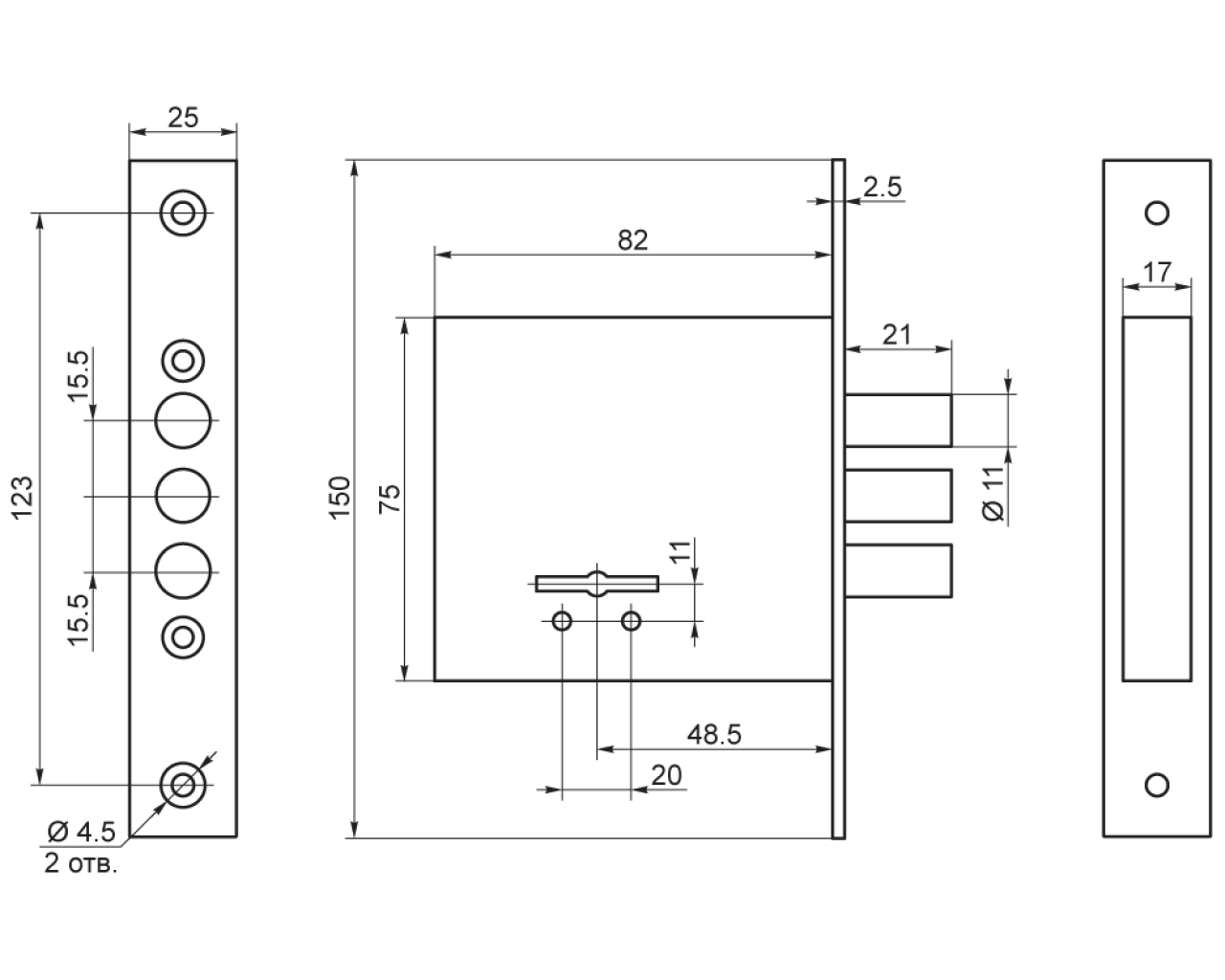 | Удаление ключевого отверстия | 48,5мм |