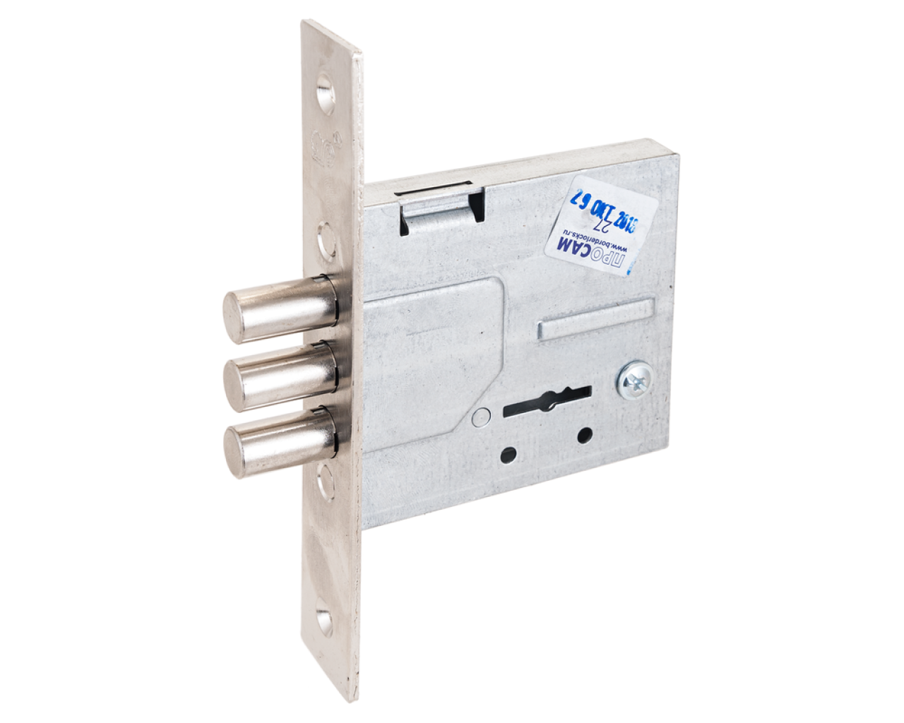 Замок врезной 6и сувальдный Предназначен для установки в деревянные и металлические двери Три цилиндрических ригеля диаметром 11мм вылет 21мм Удаление ключевого отверстия 51мм Стальной оцинкованный корпус Ширина торцевой планки 25мм Заявленная секретность 120 000 кодовых комбинаций Замок имеет защиту от высверливания Изготовлен из высокопрочных материалов 3 ключа