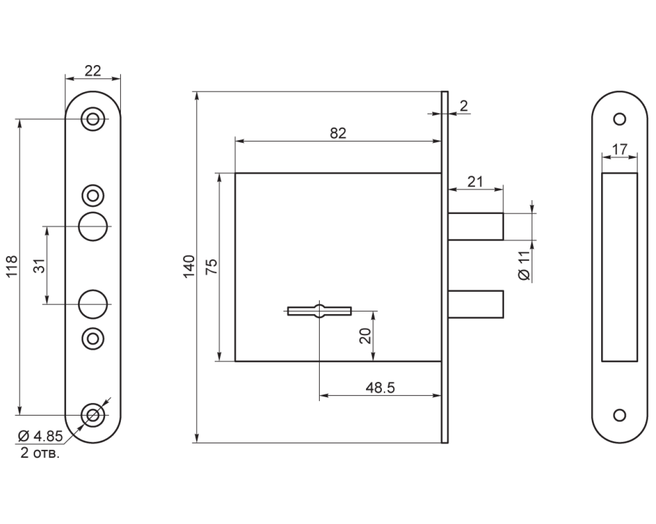 Замок врезной 4х сувальдный. Предназначен для установки в деревянные двери. Два цилиндрических ригеля диаметром 11мм, вылет 21мм. Удаление ключевого отверстия 51мм. Стальной оцинкованный корпус. Ширина торцевой планки 22мм. Заявленная секретность 100 кодовых комбинаций. 3 ключа.