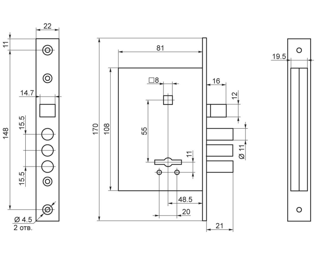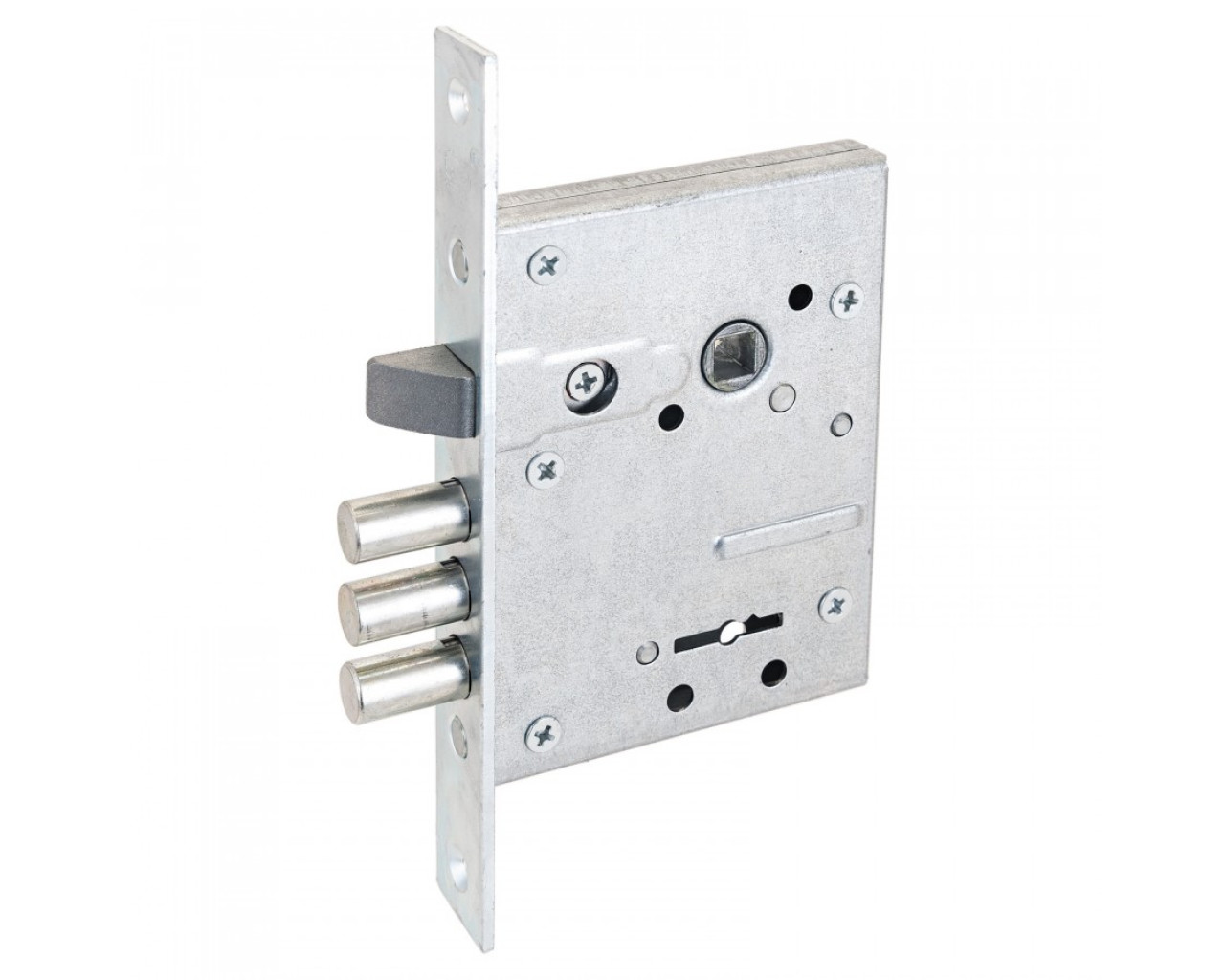 Замок врезной 6-сувальдный с защелкой. Предназначен для установки в двери толщиной 40-50 мм. Замок универсальный, возможна установка как в правые, так и в левые двери. Комплектуется 3 стальными ключами. Замок открывается и закрывается изнутри и снаружи ключом. Дверь может быть закрыта на защелку и открыта с помощью фалевой ручки при открытом сувальдном механизме. Замок имеет защиту от высверливания. Изготовлен из высокопрочных материалов. Имеет защитное покрытие. Покрытие лицевой планки — цинковое. 6-сувальдный 120000 секретов вылет ригелей — 21 мм диаметр ригеля — 11 мм количество ключей — 3 габаритные размеры 81х108х19 защита от отмычек Ширина планки 22 мм