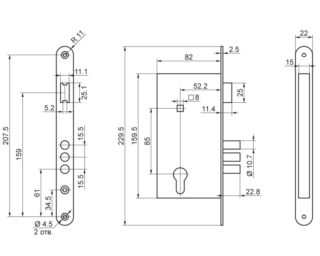 | Удаление ключевого отверстия | 52,2мм |