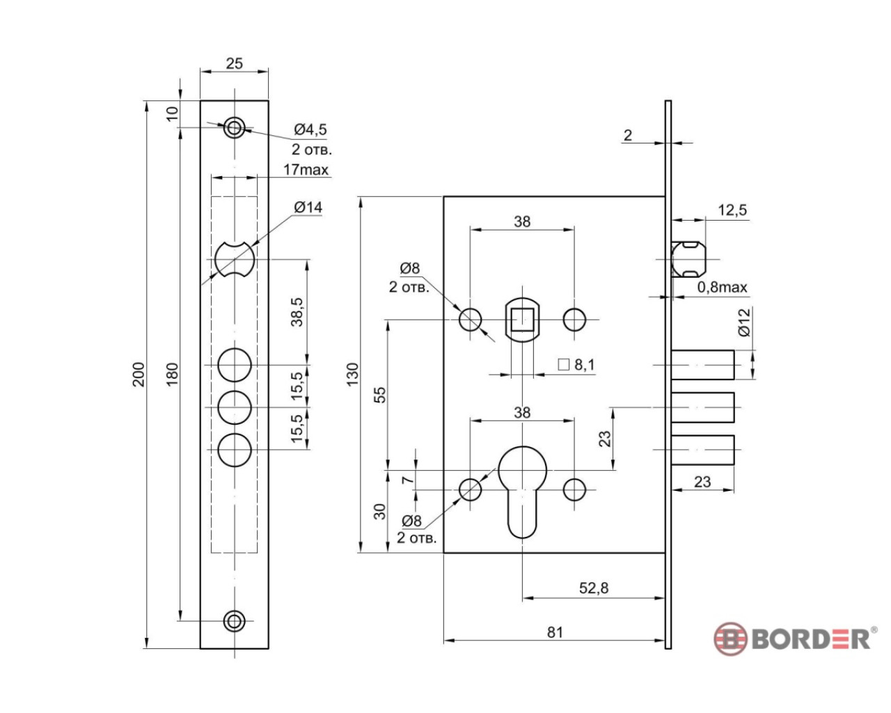 Замок врез 078931-ЗВ4-31/55 У2 без цм бо Border 4640014060407