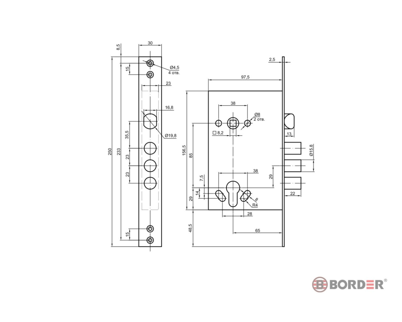 Замок врез 079048-ЗВ4-3/85Г.У2 ЗЩ Border 4607027060445