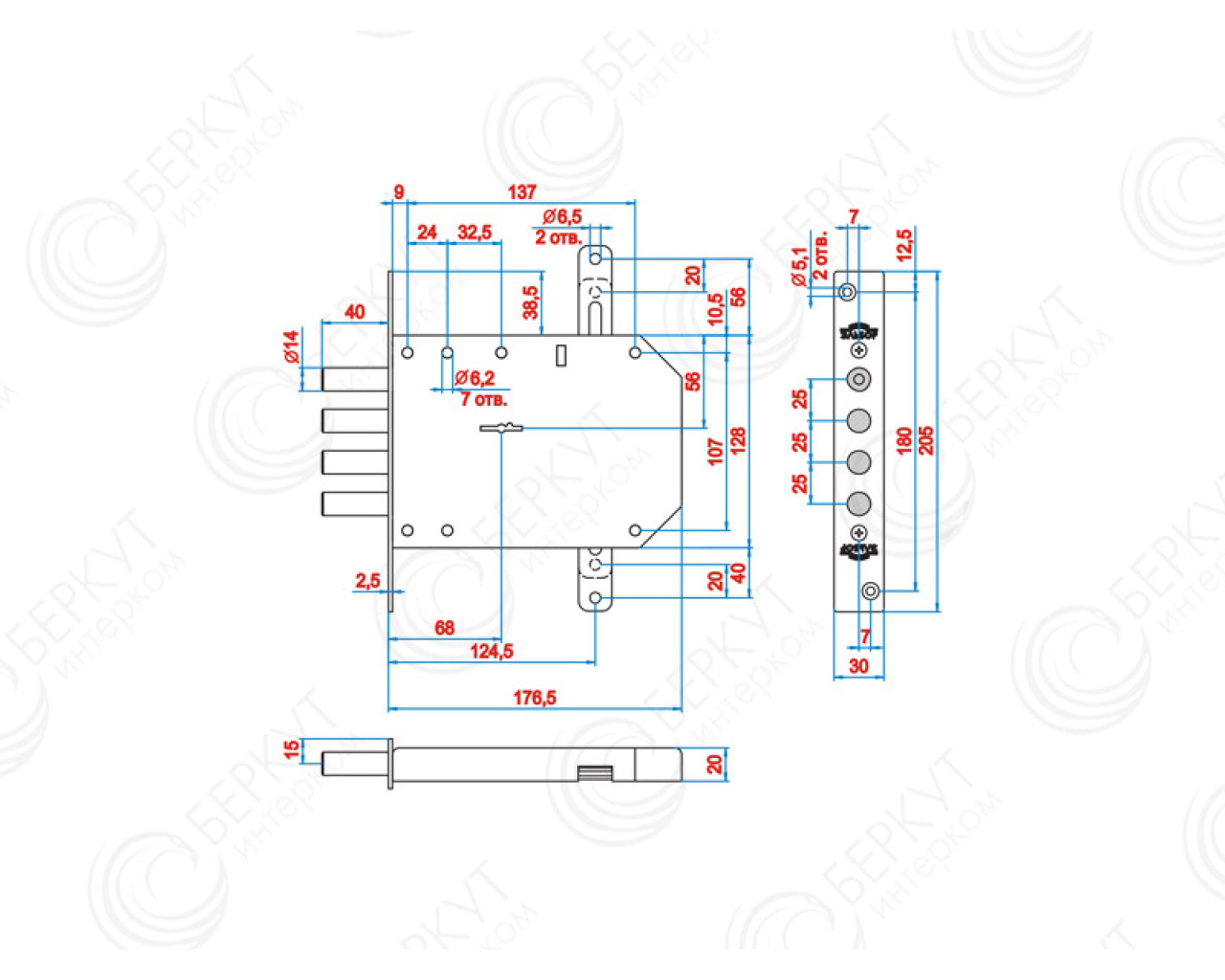 Замок врезной сувальдный с тягами для металлических дверей. Замок имеет засов из четырех цилиндрических ригелей диаметром 14 мм, с максимальным вылетом 40 мм, и вертикальные тяги с вылетом 20 мм. Удаление ключевого отверстия 68 мм. Количество оборотов ключа - 4. Габариты замка - 138,5х176,5х20 мм. Комплектация - 5 ключей, съемная торцевая планка, комплект накладок. В одном из ригелей расположен закаленный стальной стержень, обеспечивающий надежную защиту от перепиливания. Защита от взлома, высверливания, выдавливания.