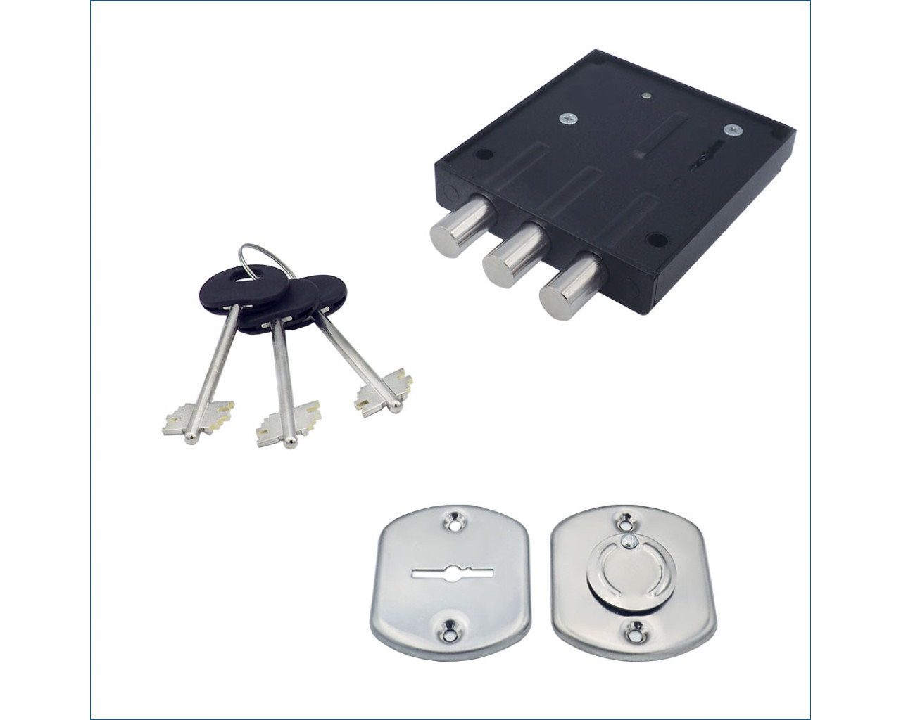 Замок врезной 6-сувальдный . Замок без торцевой планки, устанавливается в металлические двери как вкладной. Три цилиндрических ригеля диаметром 13,5мм, вылет 25мм. Удаление ключевого отверстия 70мм. 3 ключа.