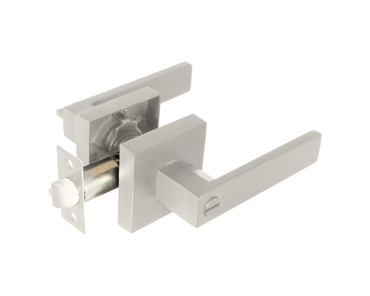 Ручка-защелка для межкомнатных дверей типа кноб с фалевой ручкой прямоугольной формы Выполнена из алюминиевого сплава с полимерным покрытием Имеет фиксацию изнутри Предназначена для дверей толщиной 32-44 мм Регулируемый бексет: 60-70 мм Скругленная защелка размером 14х19 мм с вылетом 11 мм Габариты корпуса врезной защелки 83х23х20 мм