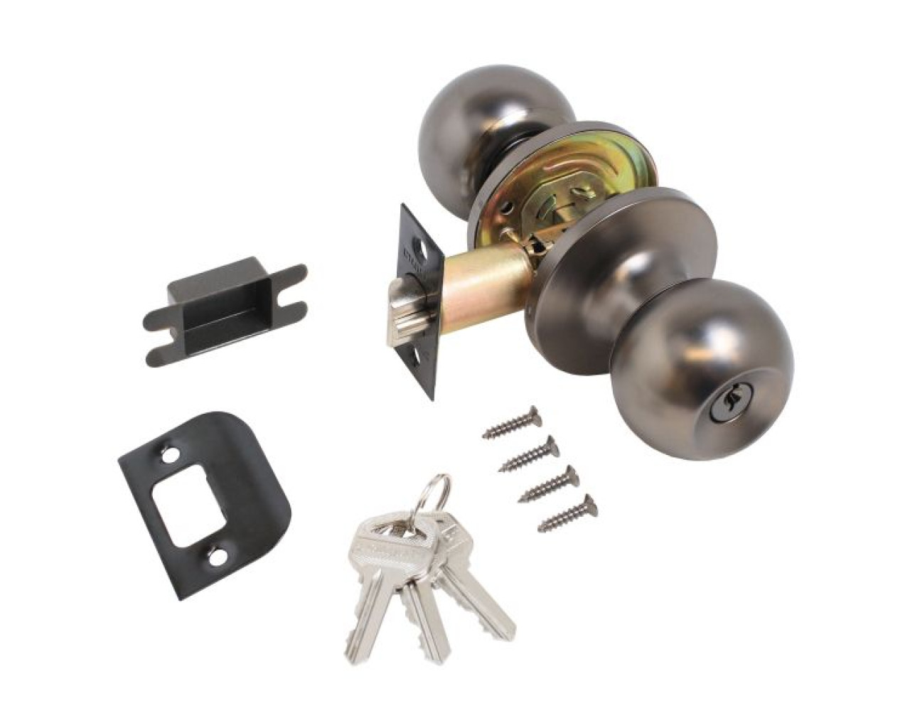 Ручка-защелка для межкомнатных дверей . Форма ручки - кнопка, круглая. Материал ручек и накладок- сталь, гальваническое покрытие. Предназначена для дверей толщиной 40 мм. Регулируемое расстояние от края двери до оси ручек 60-70 мм. Скругленная защелка размерами 14х19 мм с вылетом 12 мм. Габариты корпуса врезной защелки 85х23х20 мм.