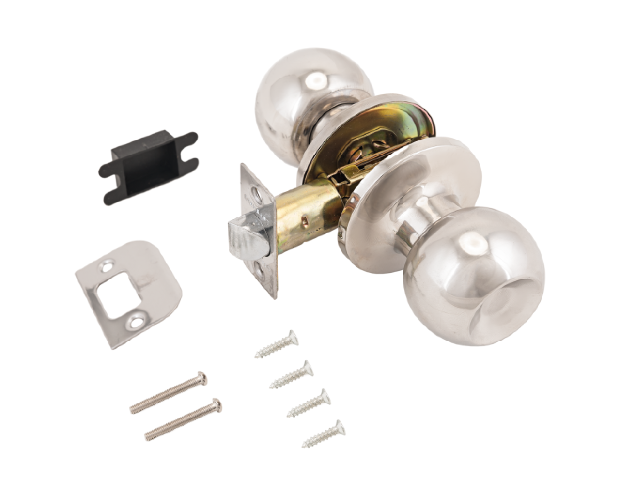 Ручка-защелка для межкомнатных дверей . Форма ручки - кнопка, круглая. Материал ручек и накладок- сталь, гальваническое покрытие. Предназначена для дверей толщиной 40 мм. Регулируемое расстояние от края двери до оси ручек 60-70 мм. Скругленная защелка размерами 14х19 мм с вылетом 12 мм. Габариты корпуса врезной защелки 85х23х20 мм.