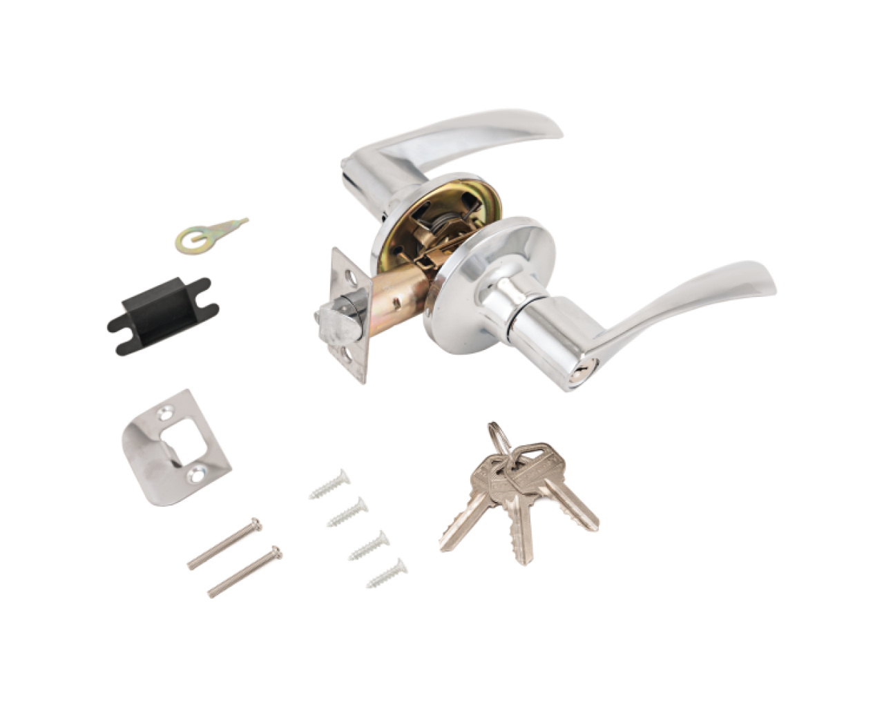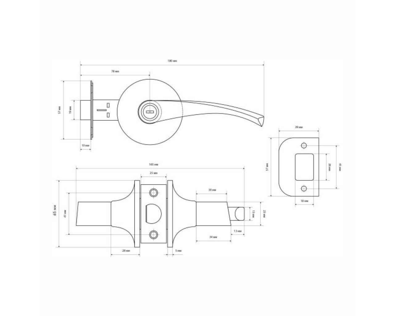 Ручка-защелка фалевая, нажимная для межкомнатных дверей . Материал ручек - алюминиевый сплав, накладок- сталь. Гальваническое покрытие. Предназначена для дверей толщиной до 40 мм. Регулируемое расстояние от края двери до оси ручек 60-70 мм. Скругленная защелка размерами 14х19 мм с вылетом 12 мм. Габариты корпуса врезной защелки 85х23х20 мм.