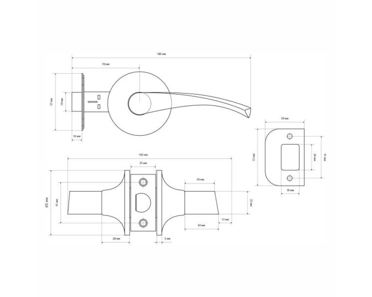 Ручка-защелка фалевая, нажимная для межкомнатных дверей . Материал ручек - алюминиевый сплав, накладок- сталь. Гальваническое покрытие. Предназначена для дверей толщиной до 40 мм. Регулируемое расстояние от края двери до оси ручек 60-70 мм. Скругленная защелка размерами 14х19 мм с вылетом 12 мм. Габариты корпуса врезной защелки 85х23х20 мм.