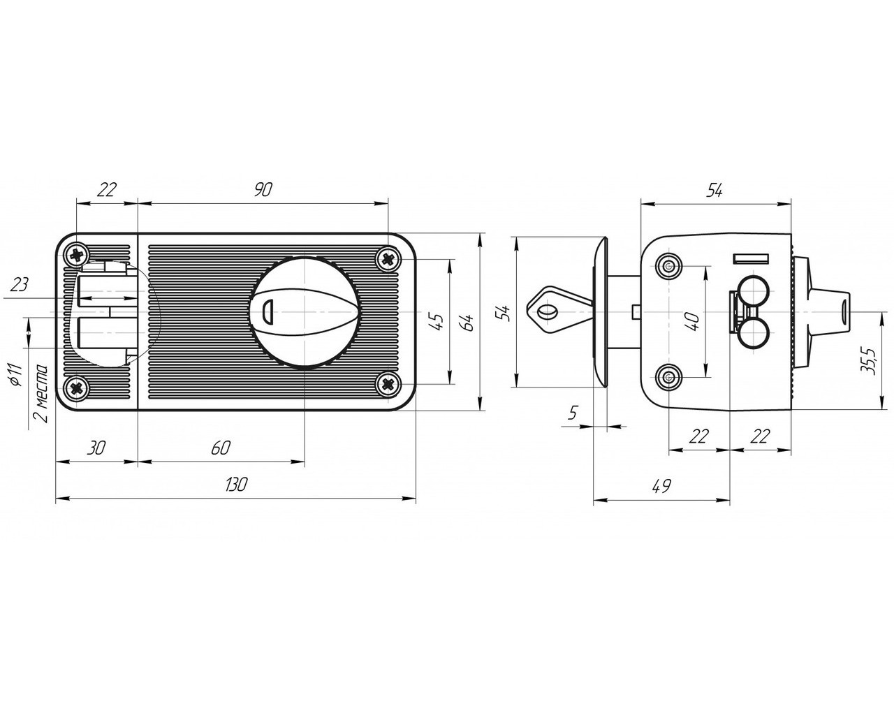 Замок оснащен функцией автоматического запирания и блокировки засова в закрытом положении