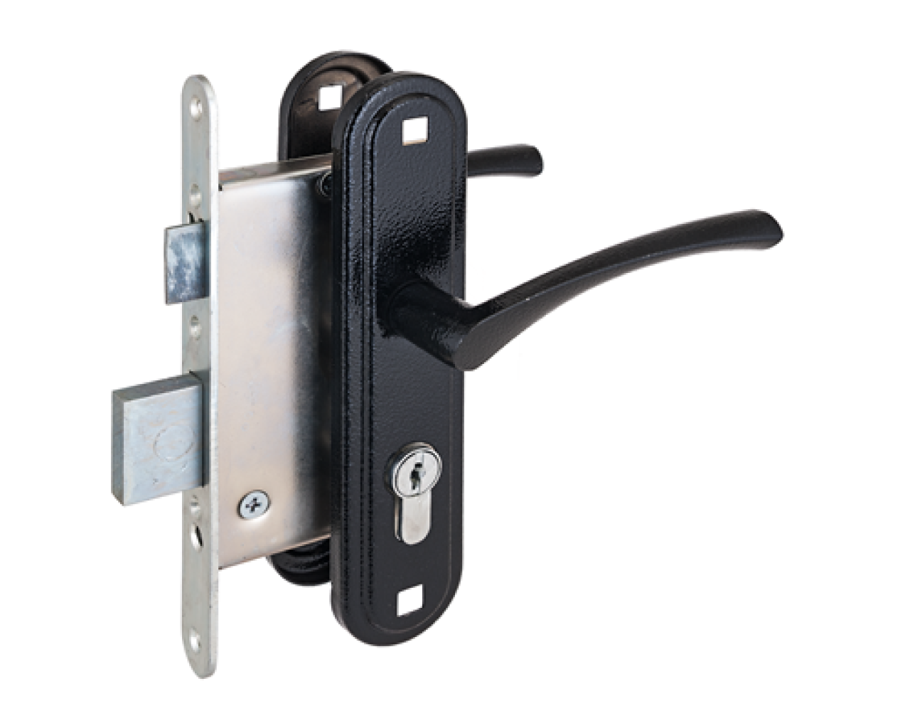 Замок имеет популярные посадочные размеры Комплектуется подпружиненными ручками цилиндровым механизмом 70 мм