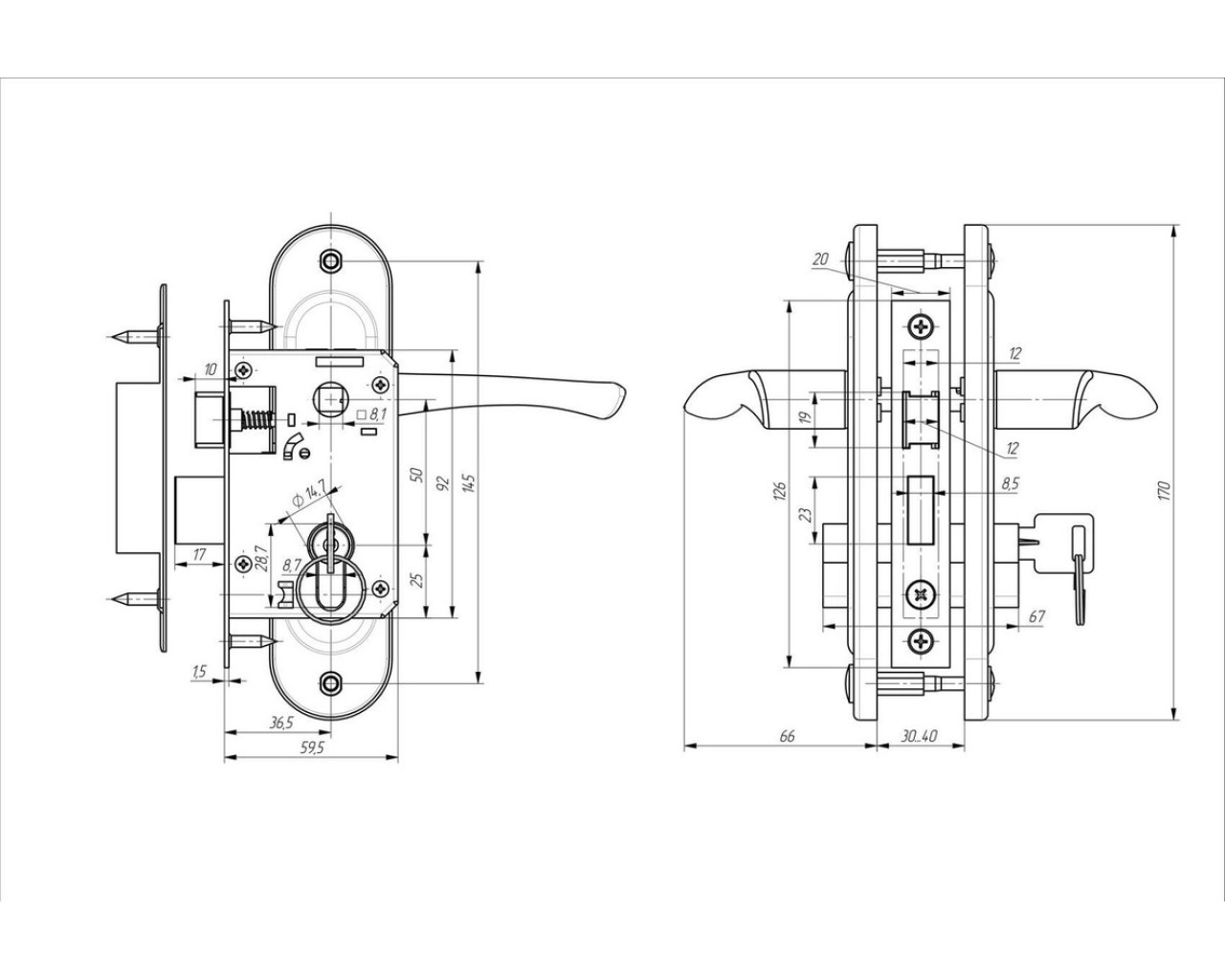 Врезной замок для деревянных дверей толщина полотна 30-40 ммЗамок оснащен цилиндром с уменьшенной высотой профиля длиной 68 мм классической универсальной защелкой и ригелем прямоугольной формы вылет 16 ммПо установочным размерам совпадает с китайскими замками с межосевым 50 мм