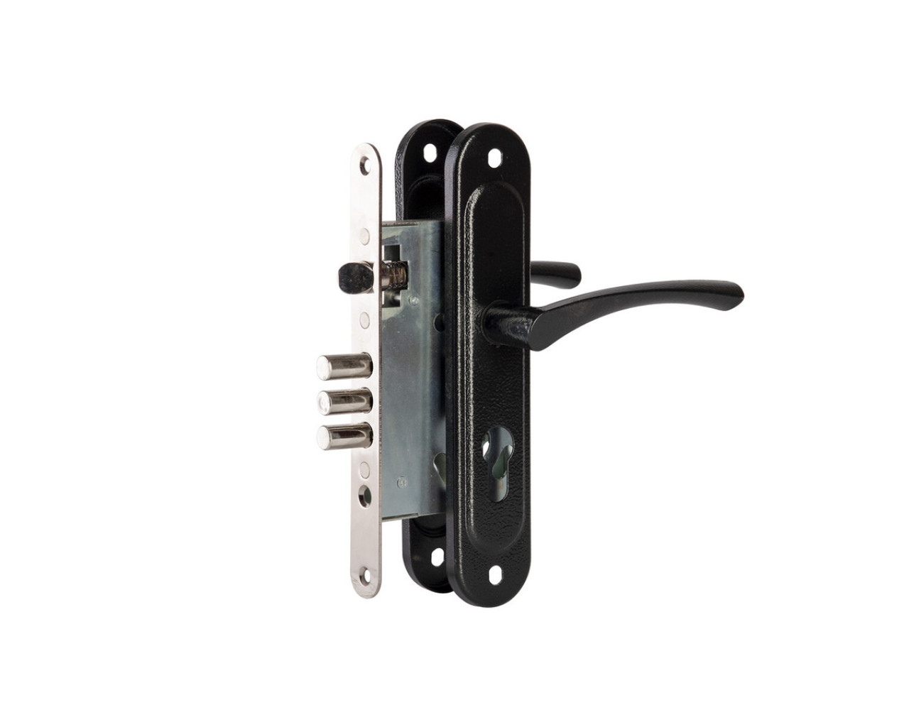 Замок имеет популярные посадочные размерыРекомендован для установки в металлические и деревянные двери толщиной 40-55 ммКомплектуется стержнем длиной 100 мм что исключает возможность поломки ручек при сильном нажатии на них В замке реализована новая система которая позволила добиться минимального рабочего хода ручек и максимально уменьшить их свободный ходСтальная защелка и засов гарантируют высокую надежность и долговечность работыРесурс работы узла защелки более 250 000 циклов