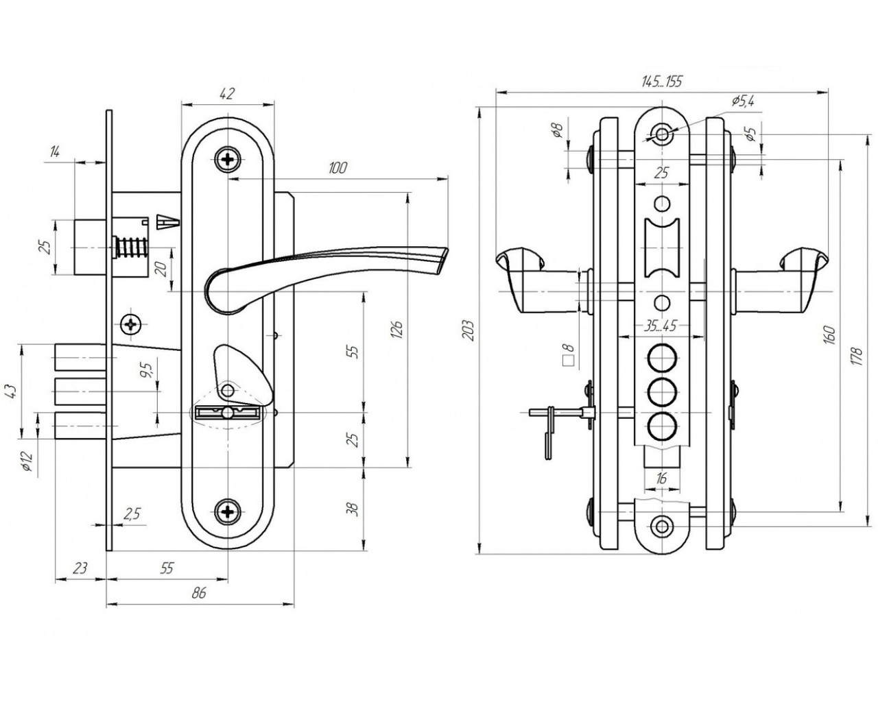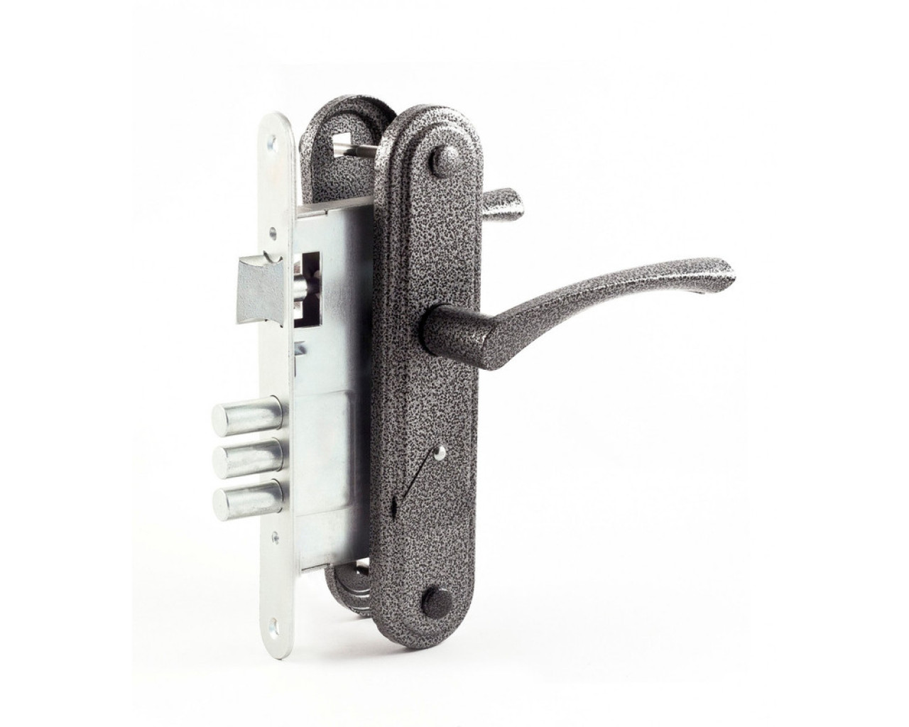 Замок с сувальдным механизмом секрета Готовый комплект для установки Ручки оснащены пружинами что обеспечивает их четкую работу Сувальдный механизм гарантирует работоспособность в самых суровых условиях эксплуатации